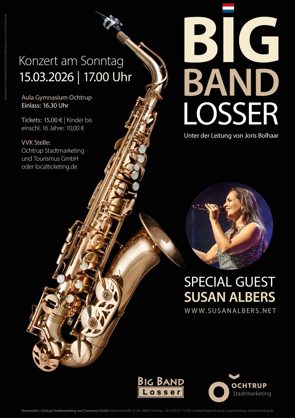 Am Sonntag, 15. März 2026 um 17.00 Uhr veranstalten wir in der Aula des Schulzentrums Ochtrup ein zweistündiges Konzert der Extraklasse. Die Big Band Losser, unter der Leitung von Joris Bolhaar, sorgt für einen kurzweiligen Abend mit hochkarätiger Musik.